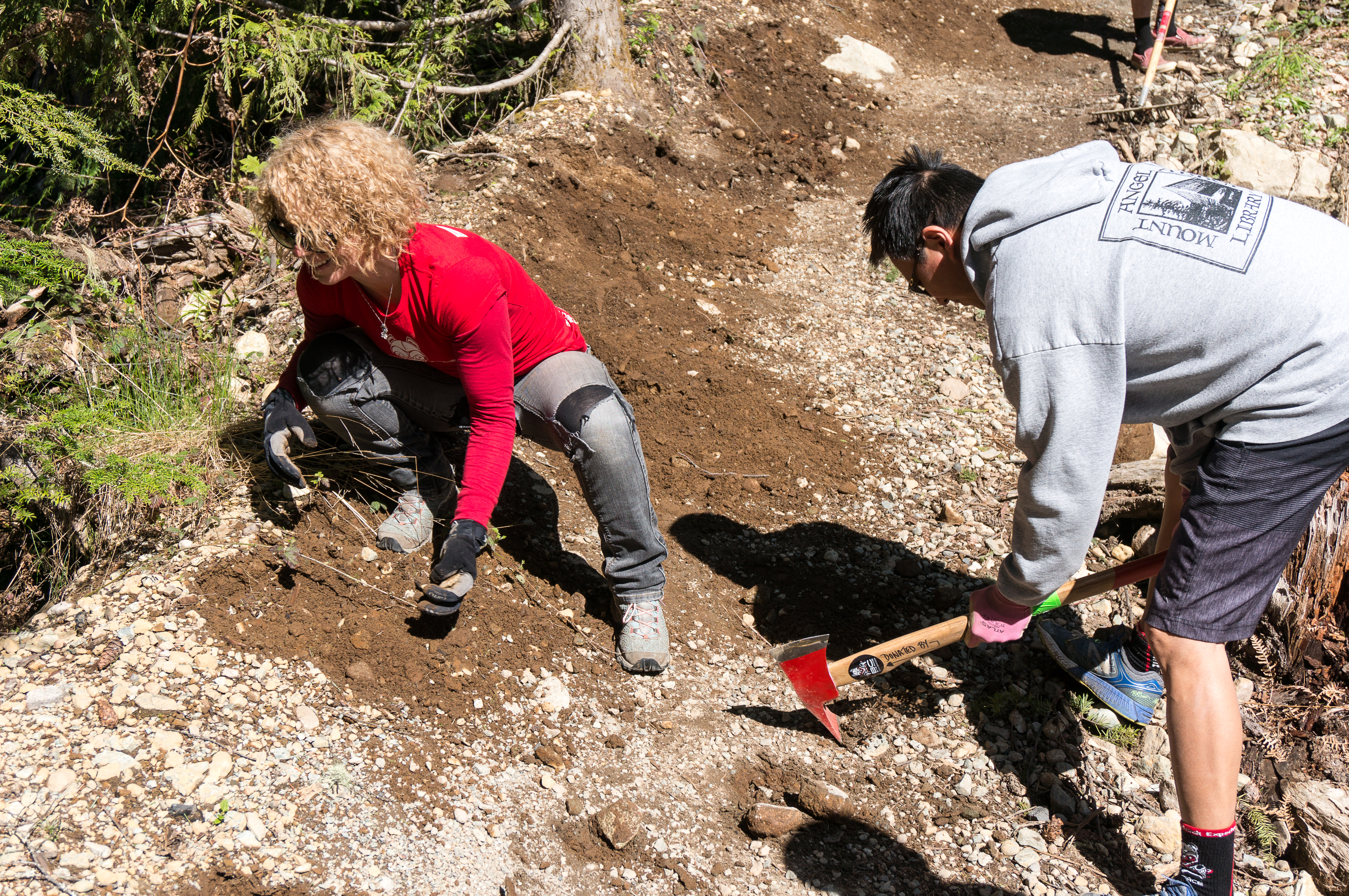 While smoothing and reshaping a large portion of lower Psueda Psuega, we were thrilled to have the social time in the sun to connect with each other. The highlight of the day was watching the first riders come through after we finished – we were quite proud of our efforts as a team and the rider reviews were all thumbs up!